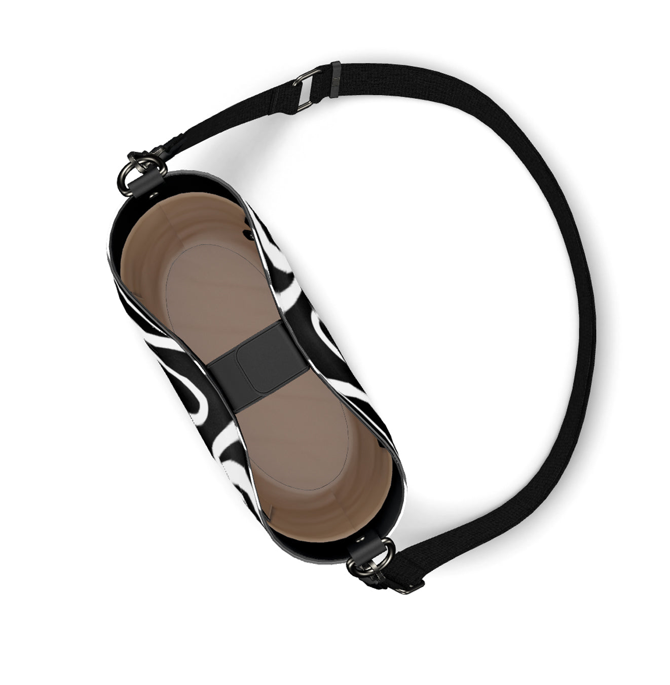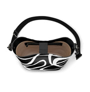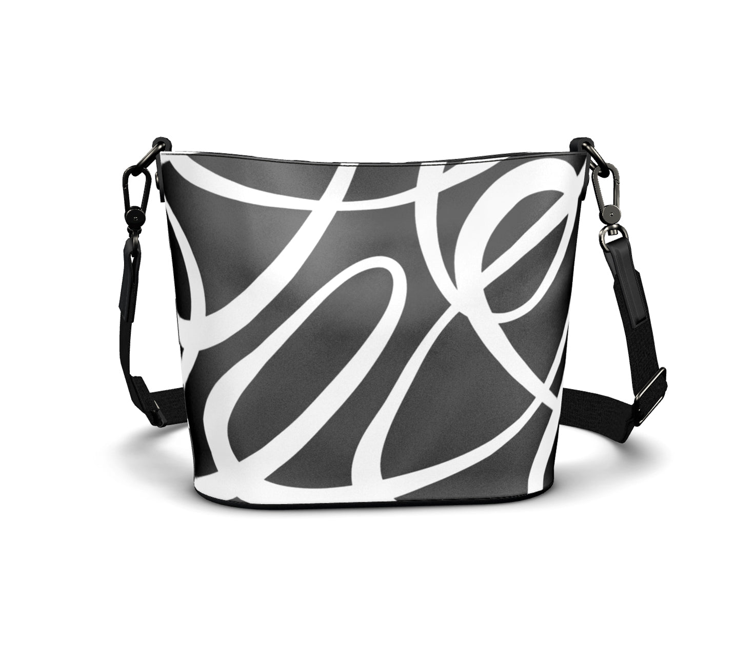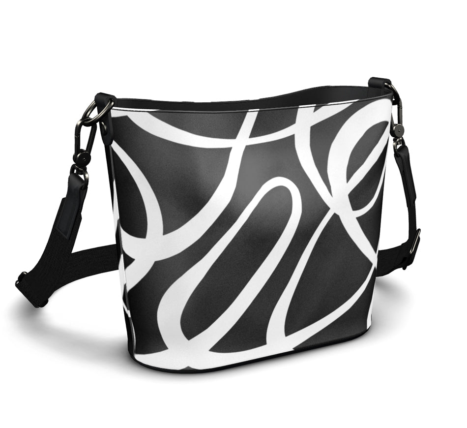 The Xavier Bucket Tote is sophisticated, yet durable. Constructed from Nappa leather and lined with luxurious soft suede fabric. Black and white swirl design. Detachable strap is also adjustable. Gunmetal hardware. Includes satin dust bag.