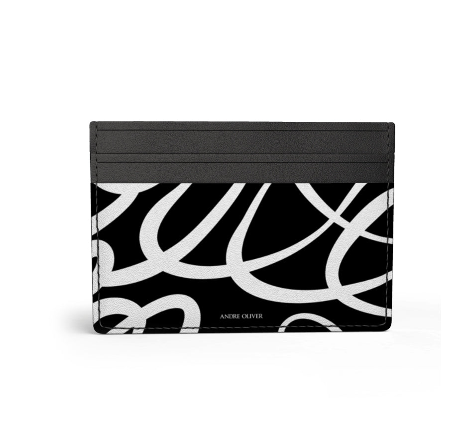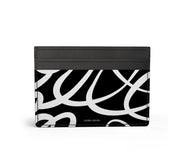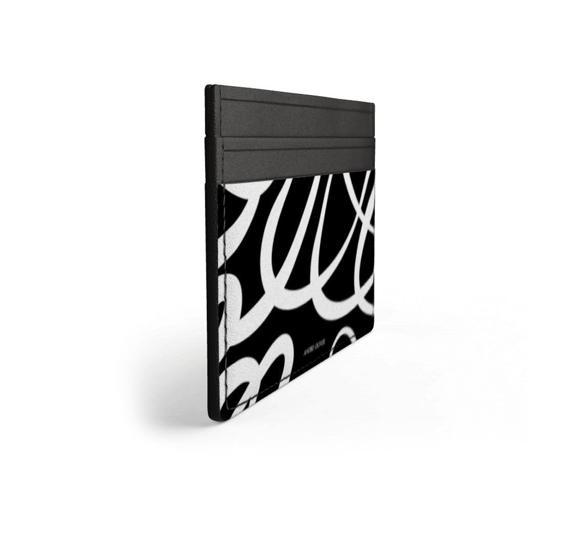 The Xavier Card Holder is hand-stitched, constructed from smooth Nappa leather. Hand painted edges adds to the detail of this card holder. Black and white swirl design.