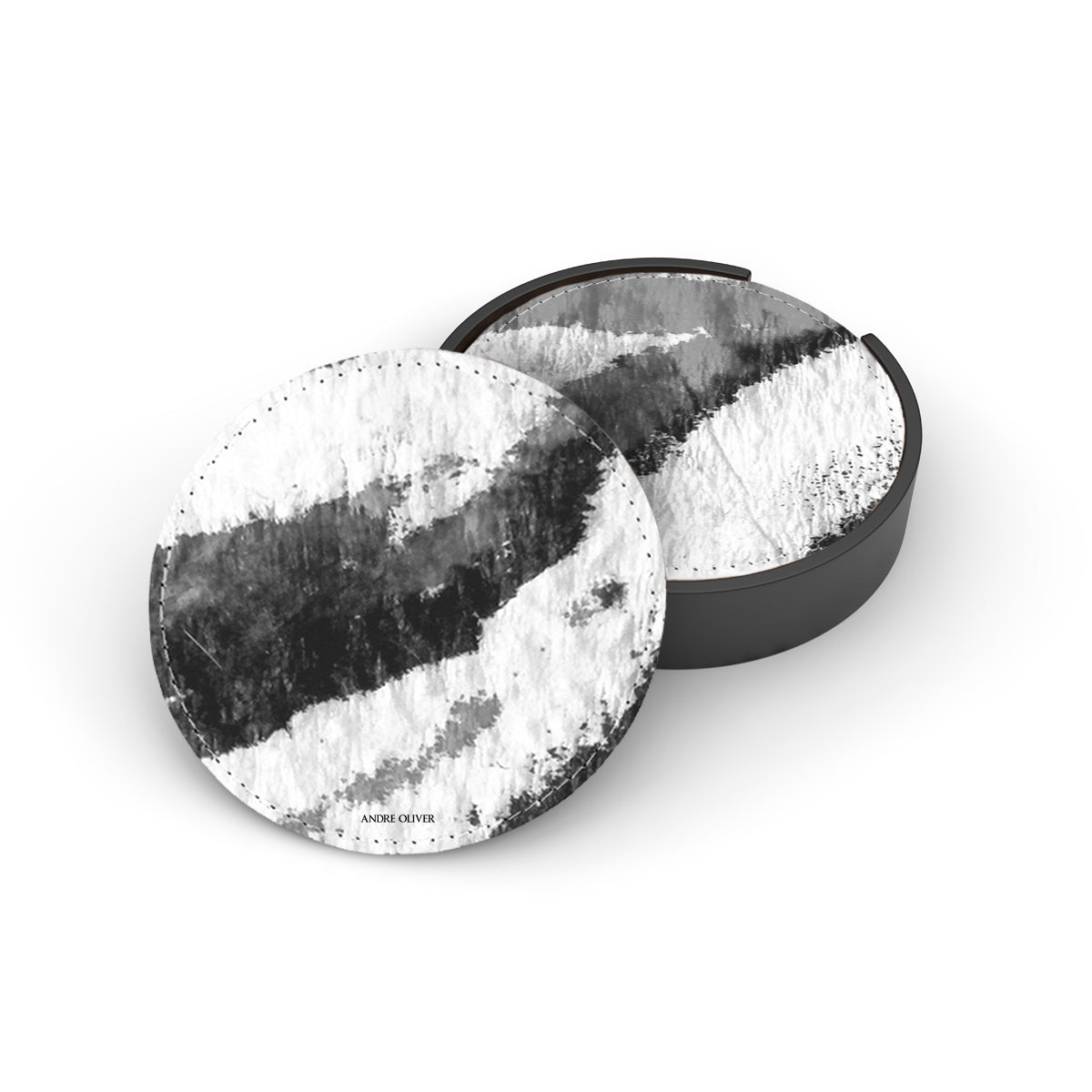 This Zebra Animal Print Coaster set includes 4 coasters. Vegan leather and hand-stitched, each coaster has a slightly different design.