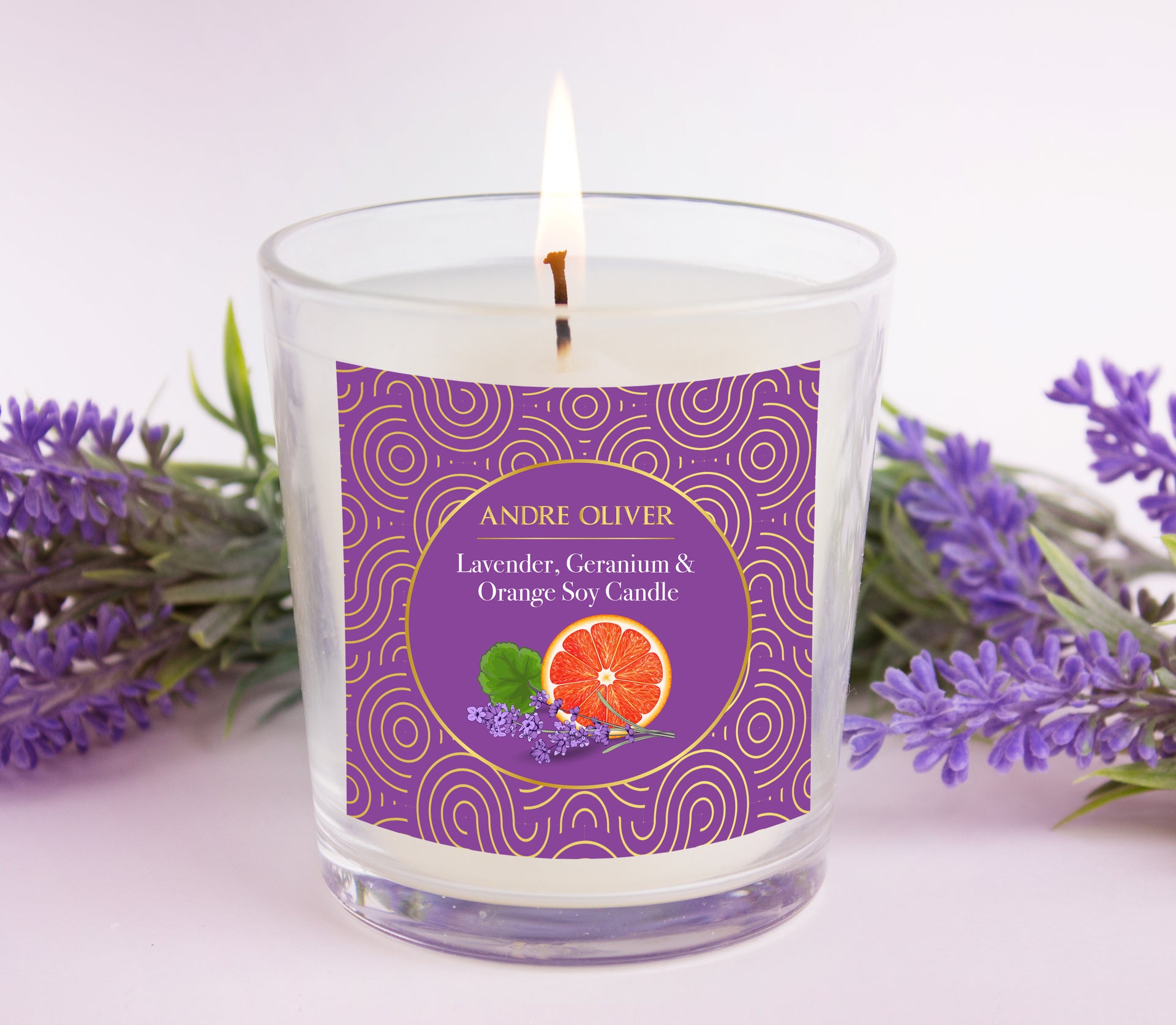 Hand-poured 100% vegan candle in recycled glass container. Made from all natural ingredients and cotton wick. Notes of lavender, geranium, sweet orange and ylang ylang. Each candle is handmade per order. 50 hour burn time.