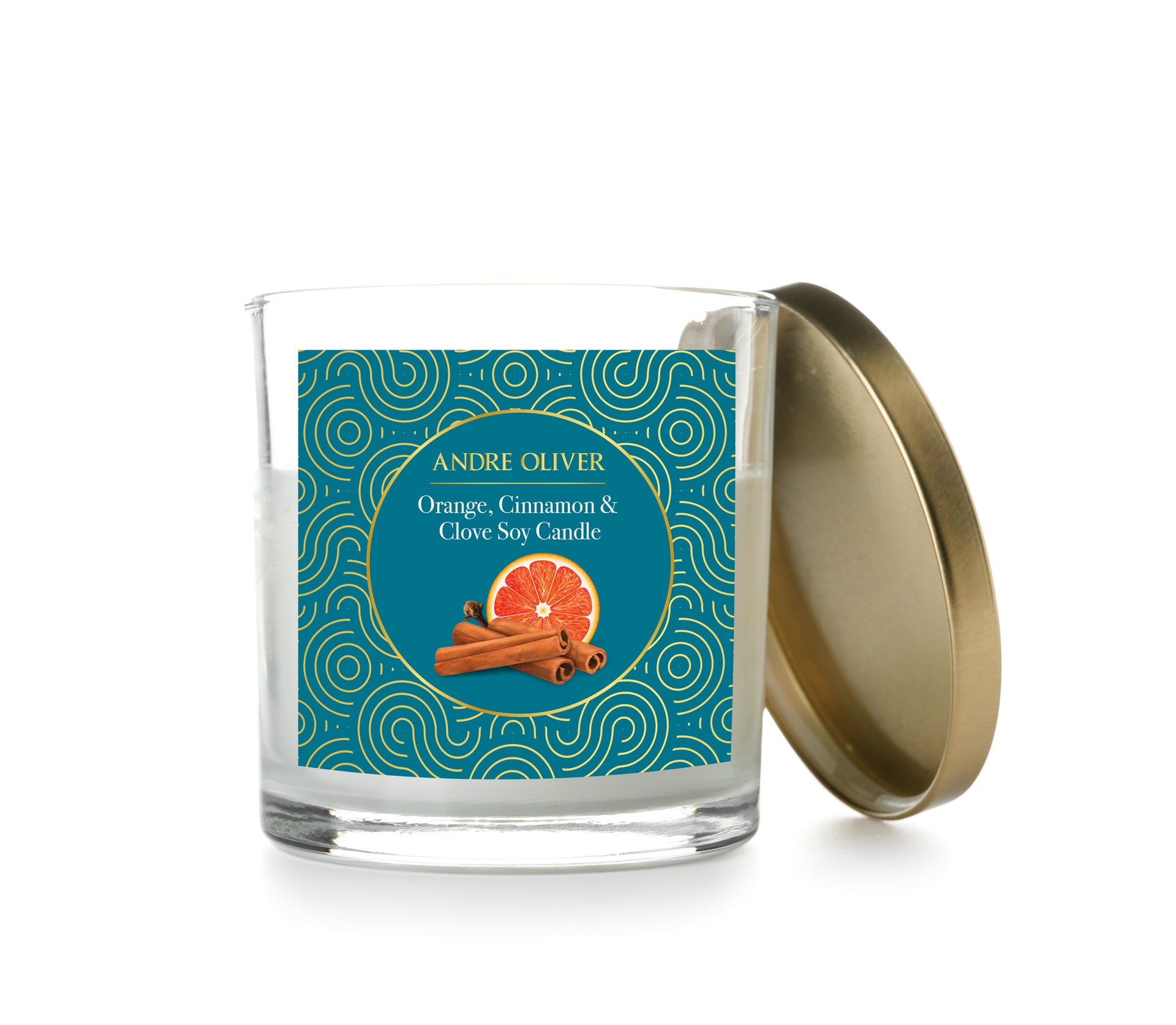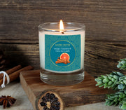 Hand-poured 100% vegan candle in recycled glass container. Made from all natural ingredients and cotton wick. Notes of juicy orange, cinnamon and clove. Each candle is handmade per order. 50 hour burn time.