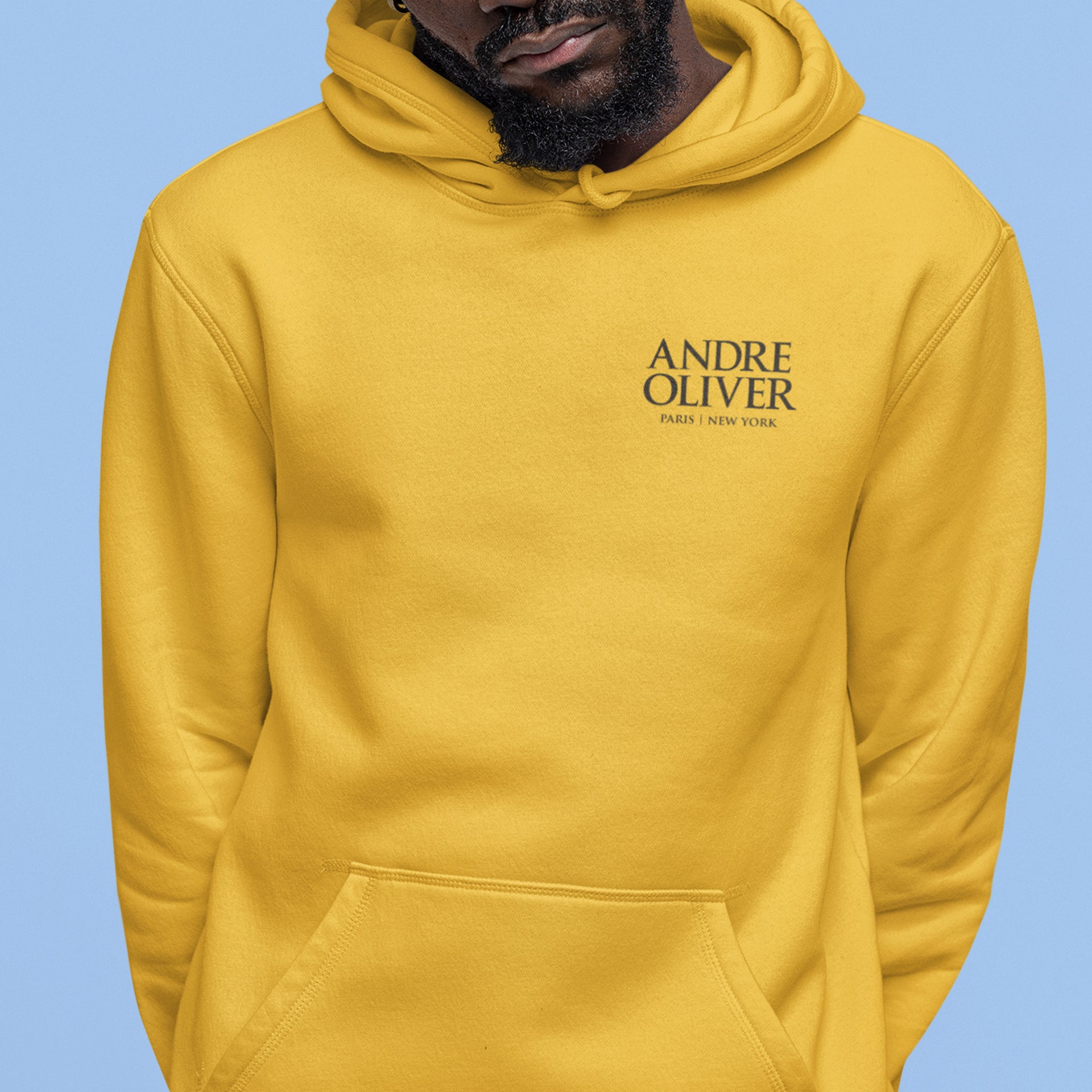 Soft cotton and polyester blend. Spacious front pocket, classic fit.