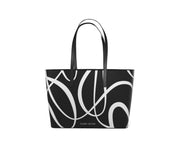 The Xavier Shopper Tote has a sleek silhouette ready to carry all your everyday essentials. Constructed from Nappa leather in a black and white swirl design. One open compartment and one inner pocket with zip closure. Includes dust bag.